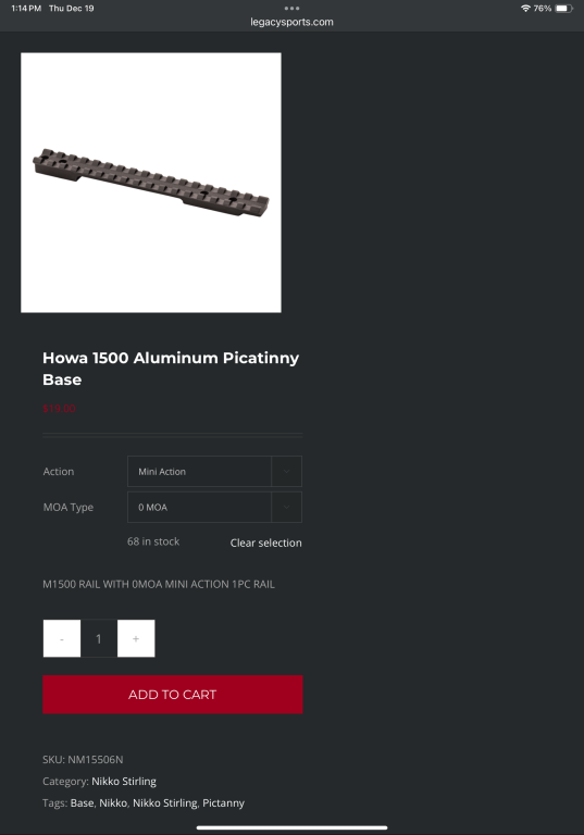 Howa Mini 6mm ARC, Athlon 2-12 w/BDC scope 75ge Speer.