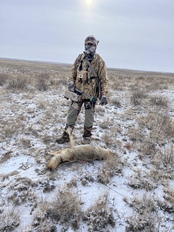 We made 10 stands, saw 1 coyote run across the road in front of us, 2nd to last stand of the day we had a coyote pop over a rise at 582 yards, I gave it about 6 inches of wind and probably should have given a few more. It was a straight on shot.