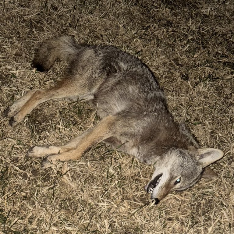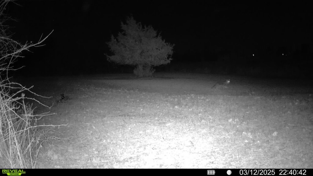 So in continuation to this, I got sick shortly after and have been out for almost a week. I started to get more pics of a pair that quickly turned into a pattern of one of them coming in at around 11 pm nightly. They’d made quick work of the carcass and I felt like I had a small window to get him killed. Last night was my first opportunity to sit in my shack. I set my alarm for 10:30 but ended up getting up right at 10. Good thing cause the coyote showed up at 10:40.I got 2 pics of a coyote last night on by bait cam. First coyotes on my property in quite some time. Neither one was actually on the bait so I'm not getting too excited, but it's a start.