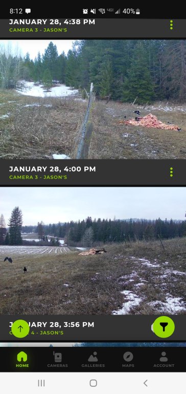 As I write this my cell cams are going wild with crows, magpies and eagles ravaging the bait pile, which in a way is good to draw attention of predators, but when the bait supply/ distance is a pain at times I would like to try to limit the birds a bit.