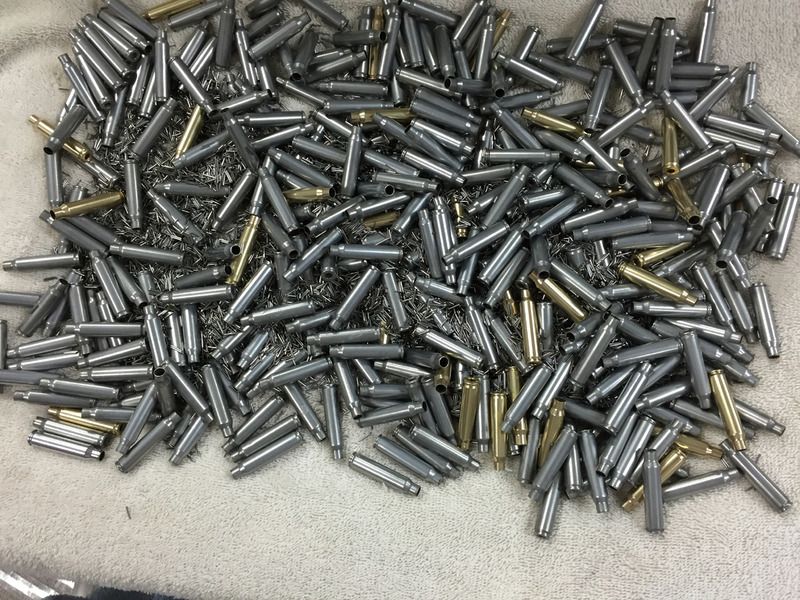 15# of pins, about 800 pieces of 223 Cases, shot of dawn, shot of lemishine for 3 hours on bottom.
