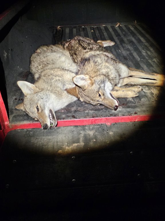 To the right in the 1st picture is about the darkest coyote ive personally killed and the reddish coyote is red as I've ever killed around here
