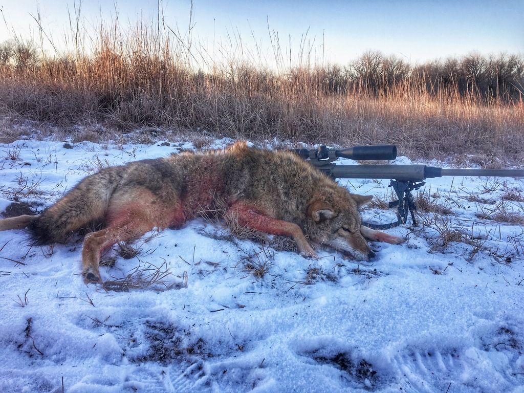 I spotted a coyote in one of the paths 120 yards out, around 7:20 and let one rip! Shot a little farther back than ideal but he did the spin move ran 30 yards and dropped. Awesome! Usually no matter what I'm hunting if I see a coyote it turns into a coyote hunt.