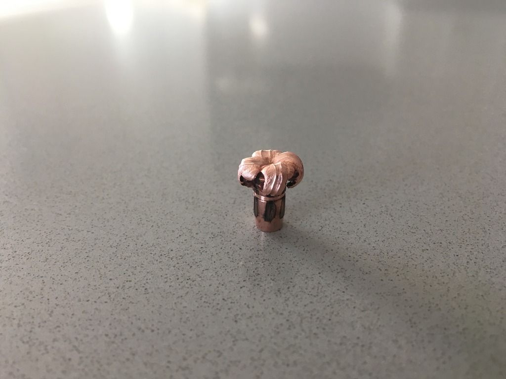 I gutted her and couldn't find the bullet anywhere in the gut pile. Lungs were complete mush though. I was starting to get a little bummed then looked down and in the last rib on the opposite side of the entrance I saw a hole. Stuck my finger in there and pulled out copper gold! I FOUND IT!
