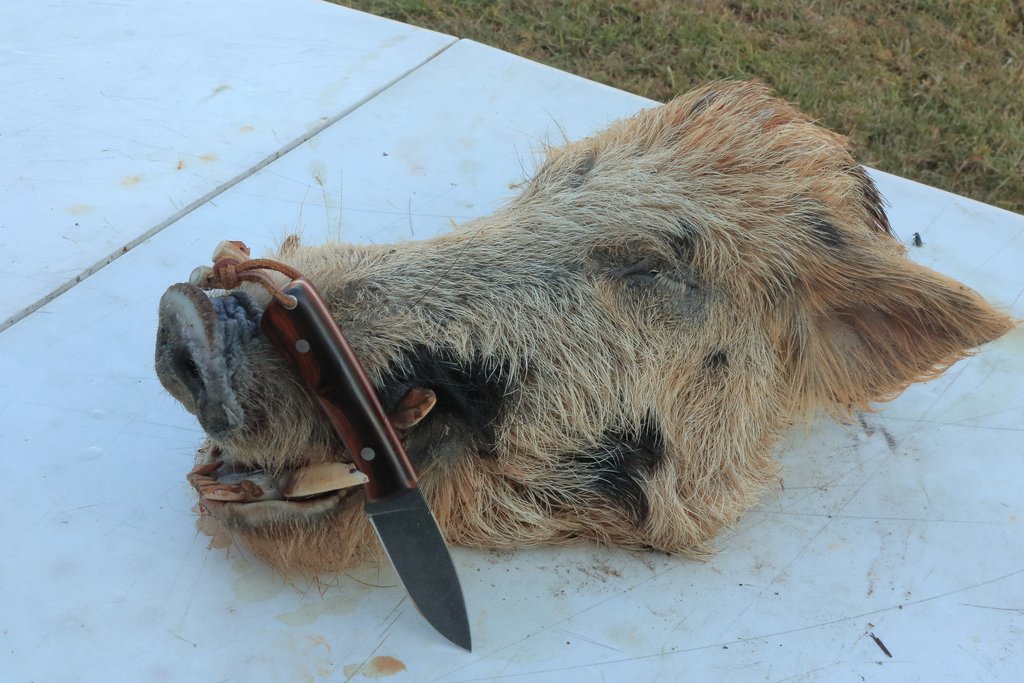I also sent pix of a hoglet I had perforated the night before that had decent tushes.