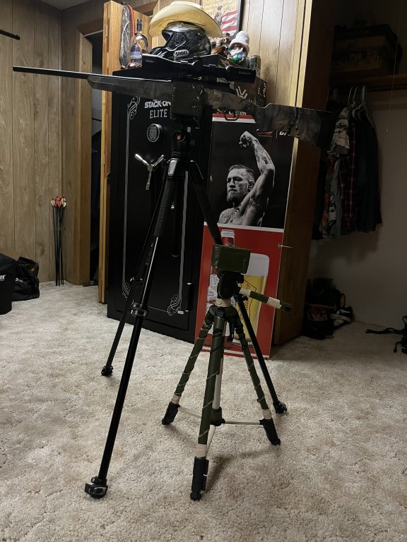 New member here, can’t wait to really dig into the archives and hopefully soak up some good info in my already over full brain! Saw this post and figured I’d chime in for my first time with the tripods I make. Both that I have made so far were camera tripods that I was able to get for free from family members and the “saddle” on top is just 4x4 deck post bases for fastening to concrete that I attached to the quick connection that would attach to the camera and then lined with thick foam and wrapped in duct tape. They work awesome for coyote hunting and considering a BOG or other tripods like that are $200+ I am pretty happy with the $25 ish I put into each of these.