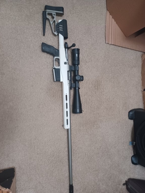 As dumb as it may sound, I absolutely hate the white color of the chassis. The butt stock, trigger guard, action and barrel are a gray (mag is black with gray floor plate) which I'm fine with.