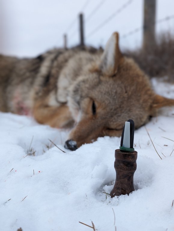 Had a small early dump of snow and managed to get out one more time with the Mrs and called in a real wary pair of coyotes. Only managed to get the one.