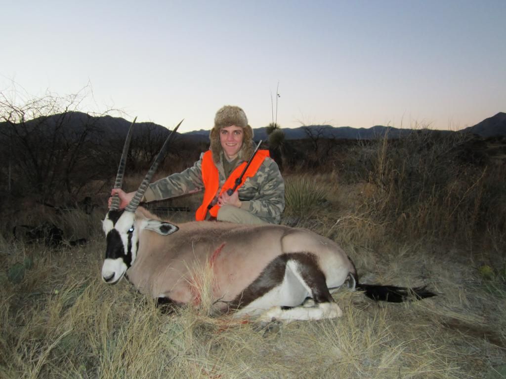 My son drew a Badge hunt tag for oryx this year and went on his hunt on January 3, 2015. I was able to scout a week before the hunt and located about 30 animals in the hunt area which was North of highway 70 for those of you familiar with the area. The hunt got off to a slow start with San Agustin pass being closed because of ice and snow on the road. The roads were opened at 9:00am which put us on range about 10:30am
