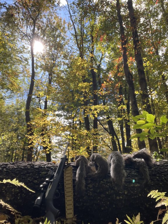 I gave squirrel hunting a shot. The first day I nailed five greys. I tried frying them but they came out chewy.