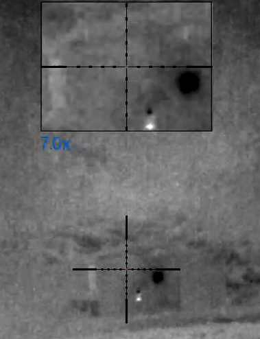 This is a picture of a sheet of plywood viewed through thermal on my range. The white spot is an ice cube in a plastic bag. The small black dot above it is a fresh bullet hole. The large black spot is the end of a lit cigarette.