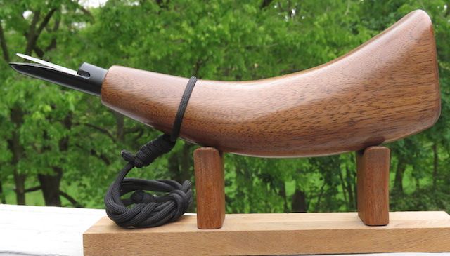 Here's a 9"long (tip to tip),Black Walnut, cow horn shaped howler. It is being offered for auction by "Infidel762". It features a modified YDD2 toneboard that really sings. It's signed and dated. I will start this auction now at $30.00 and will take care of the shipping. The auction will run until 5/31/17 7PM ET. Thank you. [Closed: Thank you "hm1996"]