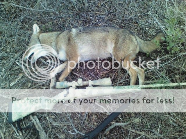 Using the dying jack rabbit call, I had three coyotes come in. I took the closest one, a male and the others scattered. A few seconds later, another pops it's head out, took a look and disappeared. One down.