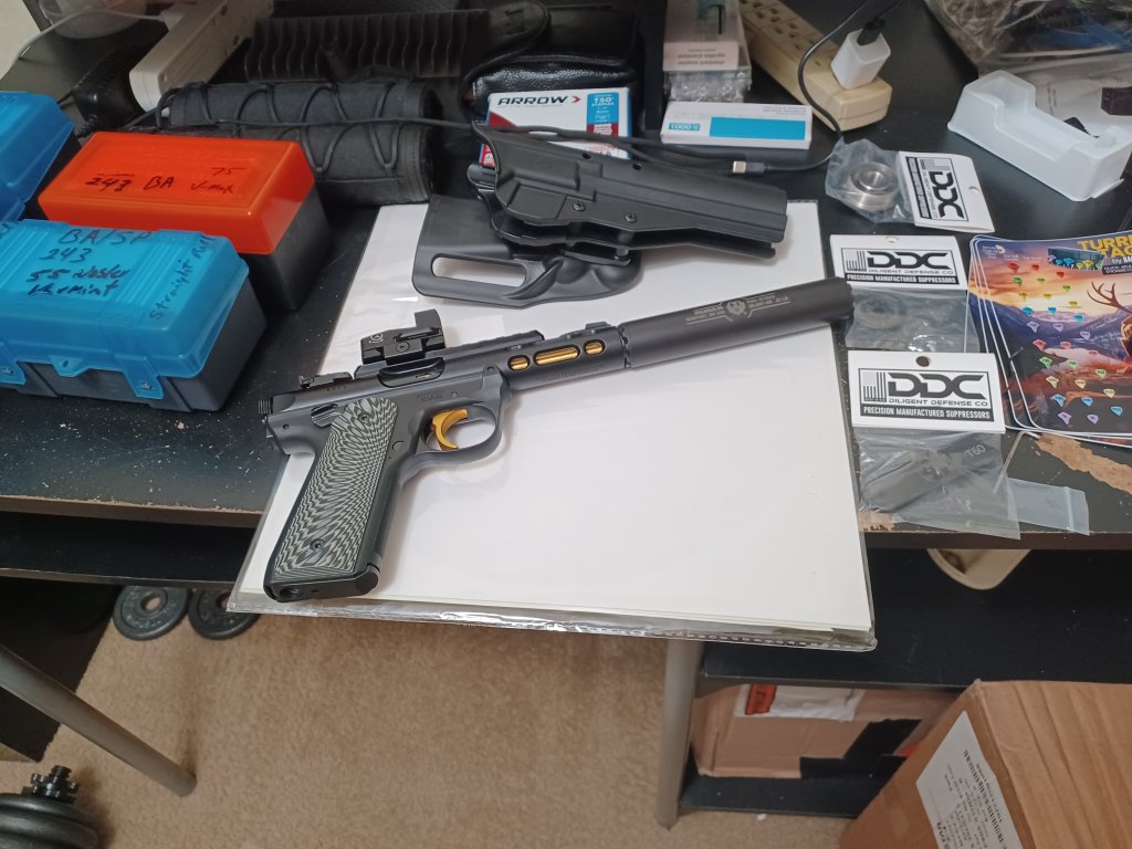 I rebarreled this one a couple months ago. Went from a Volquartsen 20" .920" barrel to this Kidd 16.5" Lightweight threaded barrel.